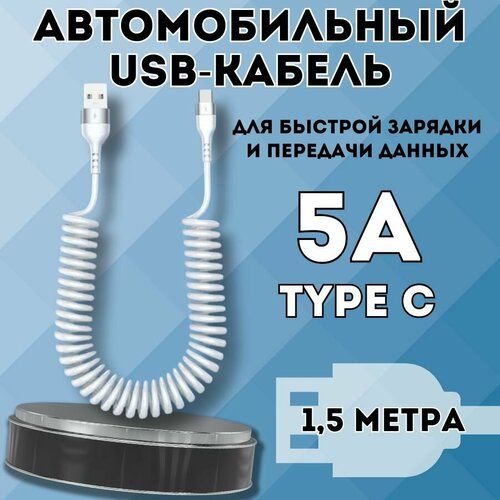 НАЙТИ ВЫГОДНЕЕ - Автомобильный витой кабель USB - TYPE C. Зарядка для телефона в машину 1.5м. Белый.