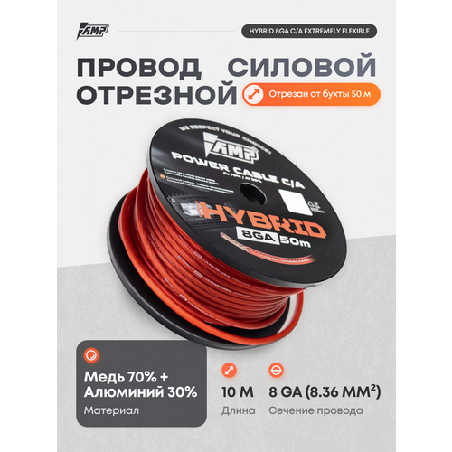 НАЙТИ ВЫГОДНЕЕ - Провод силовой AMP Hybrid 8Ga C/A Extremely flexible красный медь 70%+алюминий 30% 10 метров