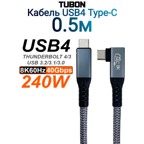 Найти - Кабель TUBON USB4 Type-C L - Type-C USBC Thunderbolt 4 40Gb 240W 8K UU03 0.5м