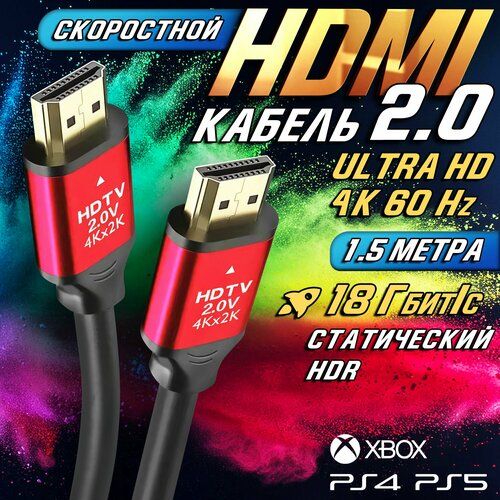 НАЙТИ ВЫГОДНЕЕ - Кабель HDMI 2.0 (4К UHD 60 Гц) 1.5 метра, провод для телевизора, ноутбука, проектора, PS4, PS5, XBOX