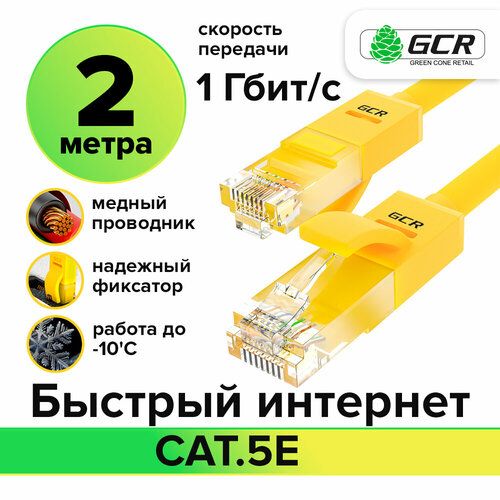 НАЙТИ ВЫГОДНЕЕ - Патч-корд 2метра UTP cat.5e 1 Гбит/с RJ45 LAN CCA компьютерный кабель для интернета контакты 24K GOLD (GCR-LNC500) желтый