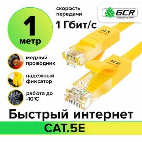 НАЙТИ ВЫГОДНЕЕ - Патч-корд UTP cat.5e 1 Гбит/с RJ45 LAN CCA кабель для интернета контакты 24K GOLD (GCR-LNC500) желтый 1.0м