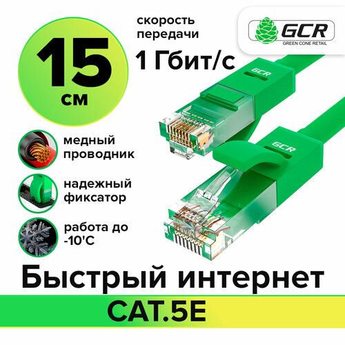 Найти - Провод UTP cat.5e 1 Гбит/с RJ45 LAN CCA кабель для интернета контакты 24K GOLD (GCR-LNC500) Зеленый 0.15м