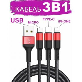 Hoco X26 - это удобный кабель 3 в 1, который обеспечивает зарядку различных устройств. Он оснащен разъемами Type-C, Micro-USB и Apple Lightning, что делает его универсальным и совместимым с большинством современных гаджетов. Его длина составляет 1.2 метра, что обеспечивает удобство в использовании даже в условиях, когда розетка находится далеко. Кабель поддерживает максимальную мощность до 2А, что позволяет быстро заряжать устройства.