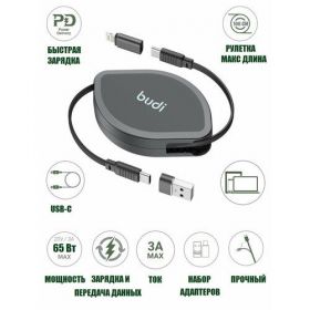 Найти - Кабель рулетка 4 в 1 USB-C со сменными адаптерами 65 Вт PD