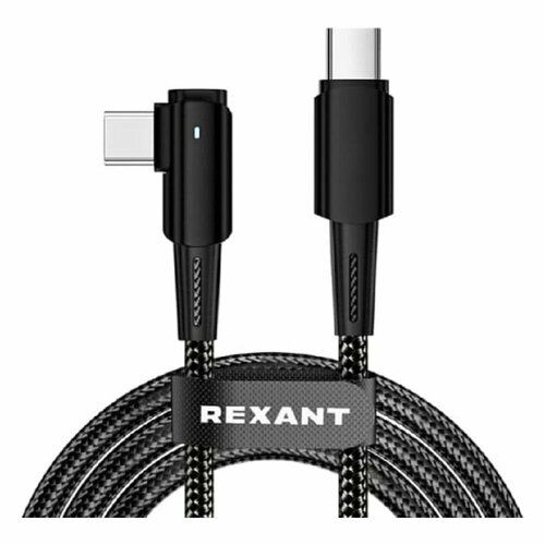 Найти - Rexant кабели 18-7070 Кабель Type-C – Type-C, 5А, 100Вт, 1м, в черной нейлоновой оплетке, с угловым штекером и световой индикацией
