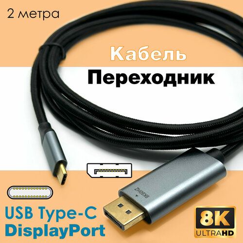 Найти - Кабель USB Type-C to DisplayPort 1.4 Black Whip 2 метра 8K, 5K, 4K, 240 Hz, 165 Hz, 144 Hz, 2 метра