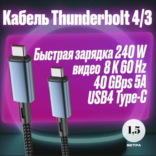 Найти - Кабель Thunderbolt 4/3 USB4 Type-C видео 4K 8K 60 Hz 40GBps 5A Быстрая Зарядка 240W и передача данных для Телефона и Ноутбука, 1.5 метра в коробке