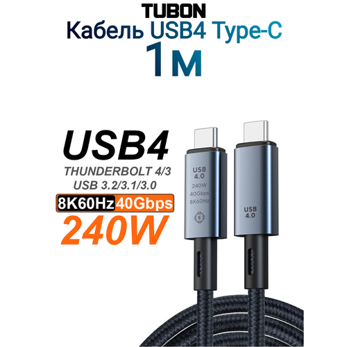 Кабель TUBON USB 4 Type-C - Type-C USBC Thunderbolt 4 40Gb 240W 8K UU05 - это надежный и функциональный аксессуар, который станет незаменимым помощником в повседневной жизни и работе.