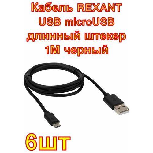 НАЙТИ ВЫГОДНЕЕ - Кабель REXANT USB microUSB длинный штекер 1М черный, 6 шт