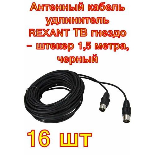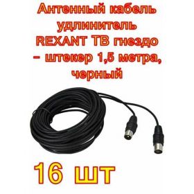 НАЙТИ ВЫГОДНЕЕ - Антенный кабель удлинитель REXANT ТВ гнездо - штекер 1,5 метра, черный ,16 штук