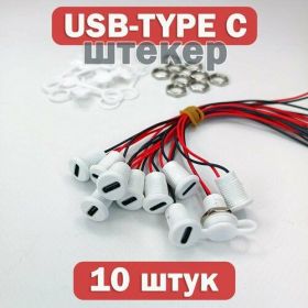 Найти - Влагостойкий коннектор штекер USB Type-C / Гнездо питания TYPE-C установочное, комплект 10 штук