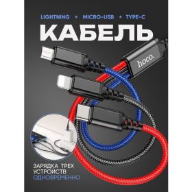 Универсальный кабель для зарядки смартфона 3 в 1. Кабель USB Type C + Lightning + Micro USB.