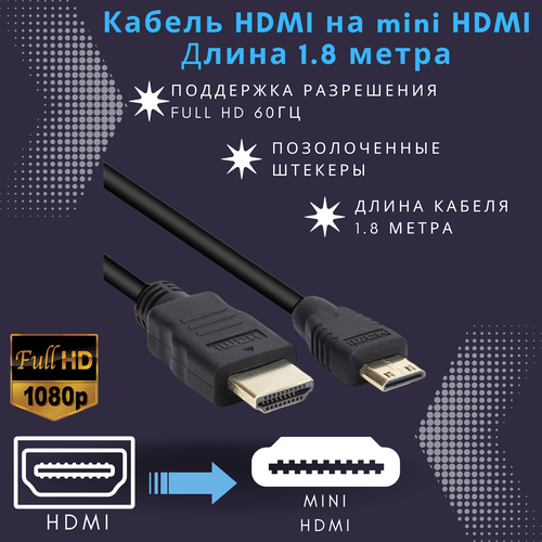 НАЙТИ ВЫГОДНЕЕ - Кабель mini HDMI на HDMI 1.8 метра ver. 1.4 Full HD 1080p 120Hz провод