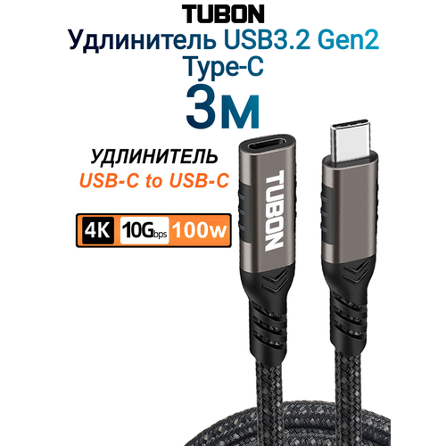 НАЙТИ ВЫГОДНЕЕ - Кабель TUBON Удлинитель Type-C USBC USB3.2 Gen2 10Gb 100w 4K/60Hz UU07 3м
