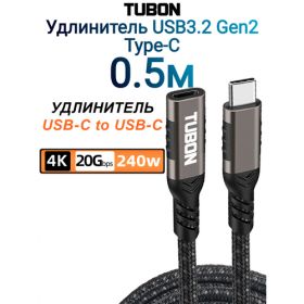 НАЙТИ ВЫГОДНЕЕ - Кабель TUBON Удлинитель Type-C USBC USB3.2 Gen2 20Gb 240w 4K/60Hz UU07 0.5м