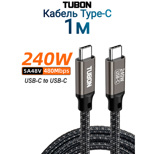 НАЙТИ ВЫГОДНЕЕ - Кабель TUBON Type-C USBC - USBC 2.0 240W 5A48V 480Mbps US02 1м
