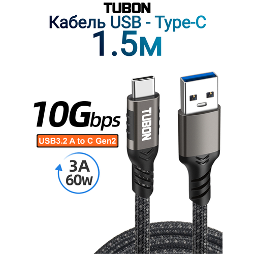 НАЙТИ ВЫГОДНЕЕ - Кабель TUBON Type-A 3.2 - Type-C USBC 3.1 Gen2 10Gb 3A 60w US01 1.5м