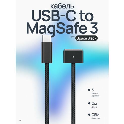 НАЙТИ ВЫГОДНЕЕ - Зарядный кабель USB-C to MagSafe 3 для MacBook, 2 метра, Space Black (Черный космос)
