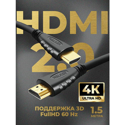 НАЙТИ ВЫГОДНЕЕ - HDMI кабель, WALKER, WHD-33, 1.5 м, поддержка 4К, провод hdmi, шнур на телевизор, ugreen, baseus, переходник, патч корд, переходник hdmi vga, черный