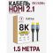 Кабель оснащен всеми необходимыми интерфейсами HDMI, включая версию 2.1, что обеспечивает высокую скорость передачи данных и совместимость с новейшими устройствами.