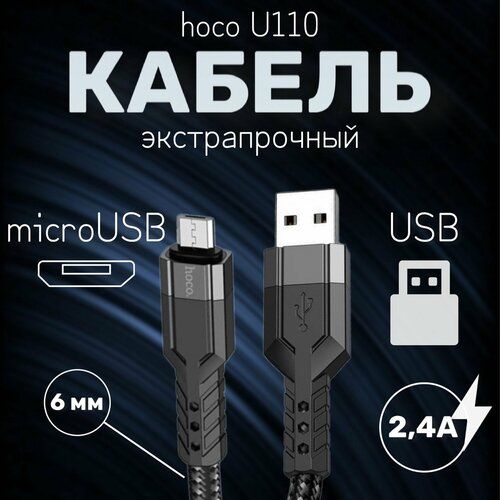 Найти - Кабель hoco U110 USB на Lightning, 1,2 метр, 2.4А, зарядка передача данных, тканевая оплетка, черный