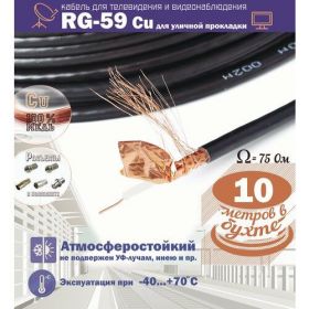 НАЙТИ ВЫГОДНЕЕ - Медный уличный коаксиальный (10м. антенный телевизионный) кабель RG-59Cu CVM 75 Ом для передачи видео (бухта 10 метров)