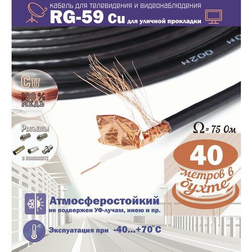 НАЙТИ ВЫГОДНЕЕ - Медный уличный коаксиальный (40м. антенный телевизионный) кабель RG-59Cu CVM 75 Ом для передачи видео (бухта 40 метров)