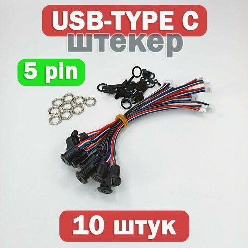 Найти - Влагостойкий коннектор 5-pin штекер USB Type-C / Гнездо питания TYPE-C установочное, комплект 10 штук