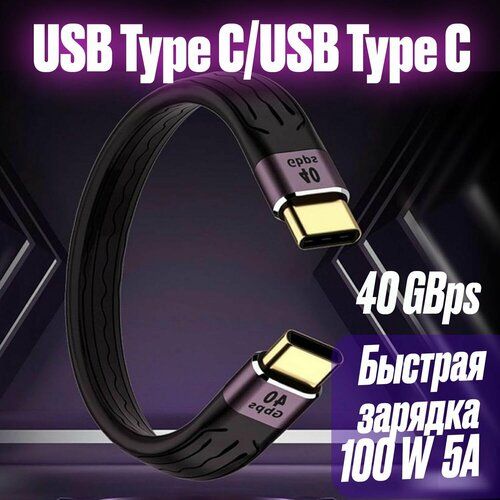 Короткий кабель/провод зарядки USB Type C/USB Type C, 13 cm, быстрая зарядка 5А 100w, USB 4.0 черный