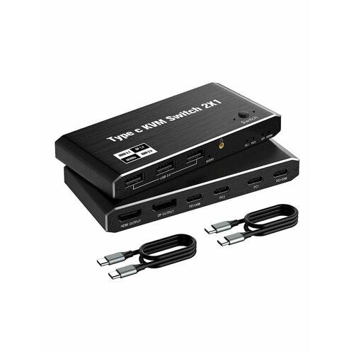 1. Это устройство позволяет подключить два компьютера через разъем Type-C, а также монитор с HDMI или DP выходом. Вдобавок, вы получаете возможность подключить до 3-х USB 2.0 устройств, например клавиатуру и мышь, что позволит Вам переключаться между компьютерами с использованием 1 комплекта клавиатуры и мыши. Портативное, мощное и простое в использовании. 2. Поддержка ноутбуков, компьютеров, или других устройств с интерфейсом Type-C. Зарядка по кабелю до 100W, переключение между компьютерами происходит через кнопку на устройстве. 3. Поддержка качества изображения 8K60Hz, адаптивного разрешения экрана, разъем 3.5mm jack 4. Материал корпуса из алюминиевого сплава, антикоррозийный. Защита от помех, быстрая передача. 5. Высокоинтегрированная комбинация цифровых чипов, подключи и работай, не требует доп. ПО Поддержка: DP 1.4; HDMI 2.1; HDCP 2.3; Thunderbolt 3/4 Gen 2 Разрешение: 8K60Hz>4K144/120Hz>1080p165Hz кабели DP И HDMI в комплект не входят