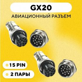 НАЙТИ ВЫГОДНЕЕ - Авиационный разъем GX20 штекер + гнездо с гайкой для монтажа на корпус (15 pin, 2 пары)