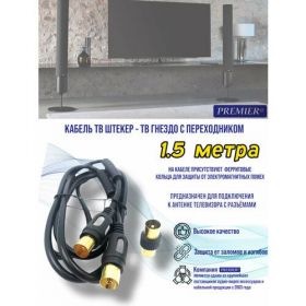 Найти - Кабель ТВ штекер-ТВ гнездо с переходником 1.5 метра.