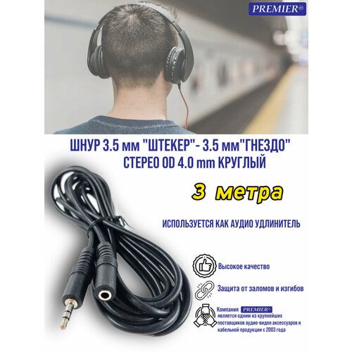 Найти - Шнур 3.5 мм штекер - 3.5 мм гнездо стерео OD4.0мм круглый 3.0 метра (удлинитель для наушников)