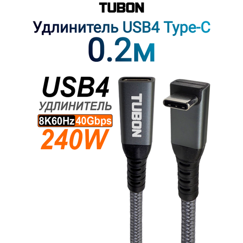 Кабель TUBON Удлинитель USB4 Type-C - Type-C USBC Thunderbolt 4 40Gb 240W 8K UU09 0.2м - это высококачественный аксессуар, который обеспечивает быструю зарядку и сверхскоростную передачу данных.