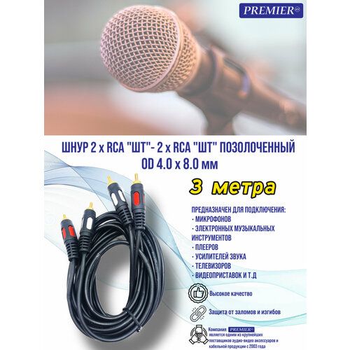 НАЙТИ ВЫГОДНЕЕ - Шнур 2 x RCA шт - 2 x RCA шт позолоченный OD4.0x8.0мм 3.0метра