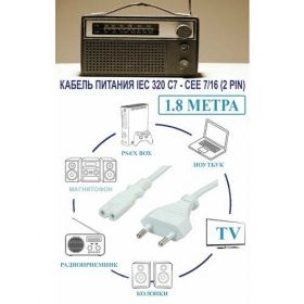 Найти - Кабель питания IEC C7 (2-pin) ( IEC 320 C7 - CEE 7/16 (2 pin)) для бытовой техники, черный, 1.8 метра