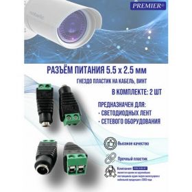 Разъем питания 5.5x2.5мм гнездо пластик на кабель, винт.