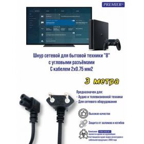 Найти - Шнур сетевой для бытовой техники 8 с угловыми разъемами с кабелем 2x0.75мм2 3 метра
