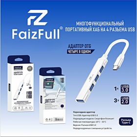 НАЙТИ ВЫГОДНЕЕ - HUB Type-C, переходник на 4 порта USB, white-silver