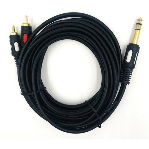 Шнур 6.35мм штекер стерео - 2 x RCA штекер "позолоченный" сечение кабеля 4.0x8.0мм 3.0метра