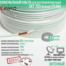 Найти - Антенный медный коаксиальный (телевизионный) кабель SAT-703 indoor внутренний белый для передачи видео, 40 метров