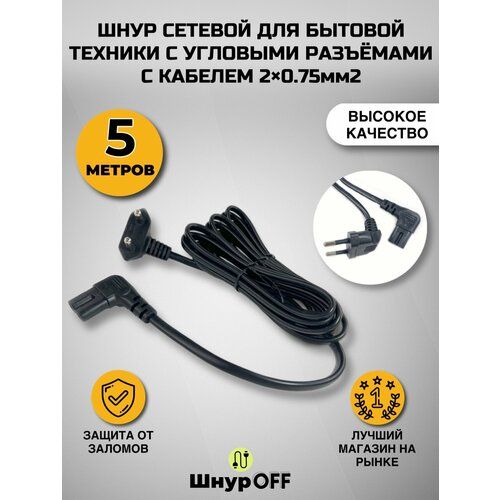 Найти - Шнур сетевой для бытовой техники с угловыми разъемами с кабелем 2x0.75мм2 (5.0 метров)