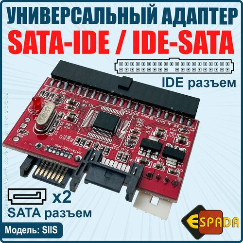 Конвертер Espada SATA to IDE SIIS - это устройство, которое позволяет подключить жесткий диск или SSD с интерфейсом SATA к компьютеру с разъемом IDE. Это устройство является незаменимым помощником для тех, кто хочет расширить возможности своего компьютера или ноутбука, добавив в него дополнительные накопители.