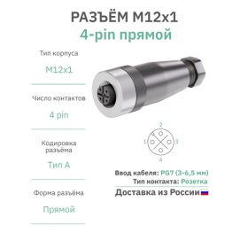 Найти - Разъём М12 4 pin прямой / розетка (мама) / PG7 (3-6,5 мм диаметр под кабель) / модель RAZM-F12-C4