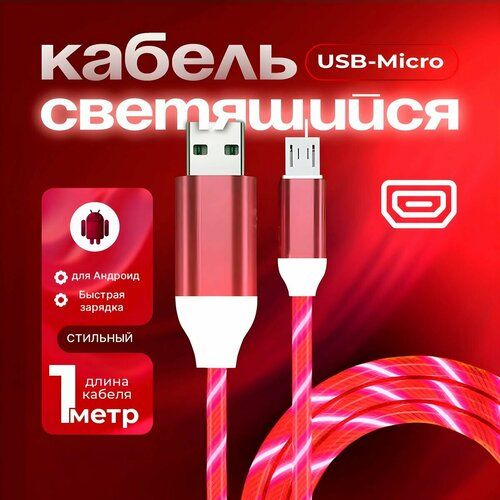 НАЙТИ ВЫГОДНЕЕ - Светящийся кабель / быстрая зарядка / светящийся кабель для Андроида / кабель для зарядки телефона micro-USB/ Красный/red