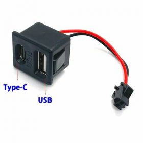 Разъем питания USB Type-C и USB (мама) предназначен для установки в корпус/панель. Оборудован двумя проводами.