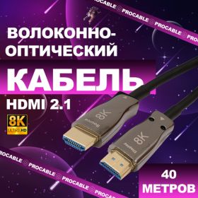 Ультратонкий волоконно-оптический кабель HDMI версии 2.1 (Active Optical Fiber Cable 8K HD) 40 метров производства PROCABLE-AV - это идеальное решение для самых требовательных пользователей, которым нужен надежный и качественный видеокабель для передачи цифрового сигнала.