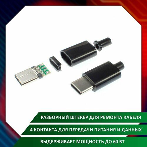 Найти - USB Type-C разборный разъем с пластиковым кожухом (черный)