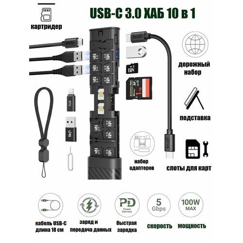 Найти - USB-C 3.0 Хаб 10 в 1 с картридером + хранилище карт + кабель 4 в 1